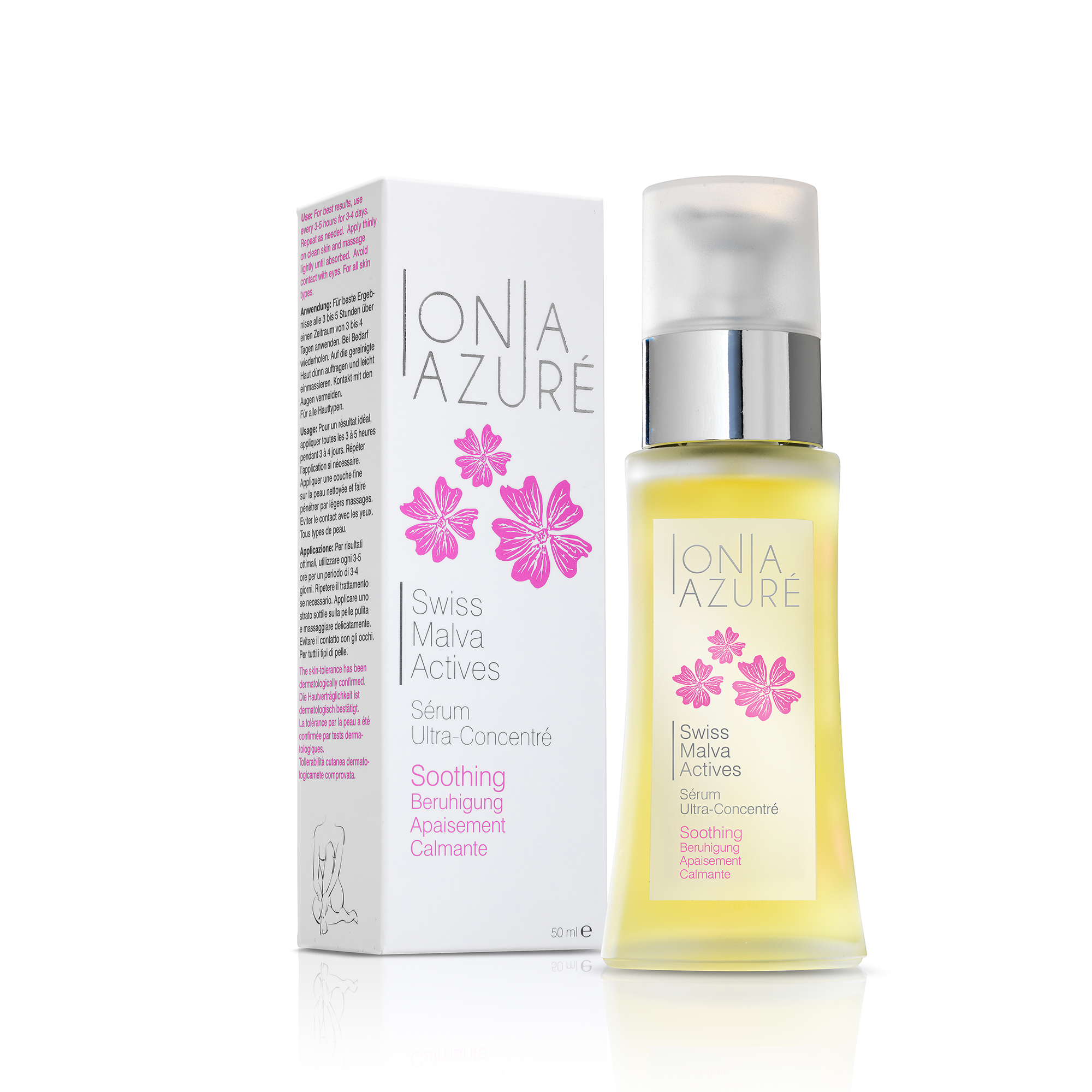 Swiss Malva Actives ist ein hochwirksames hautberuhigendes Serum aus natürlichen Inhaltsstoffen und dem Extrakt der BIO-Malve aus den Schweizer Alpen für eine intensive Behandlung von gereizter Haut.